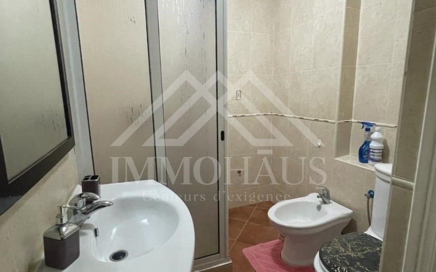 IMMOHAUS Tanger met à votre disposition cet appartement meublé au 1er étage avec ascenseur, situé dans une résidence sécurisée avec une place au garage, bien ensoleillé à cote hôtel dixil, vue mer, calme.