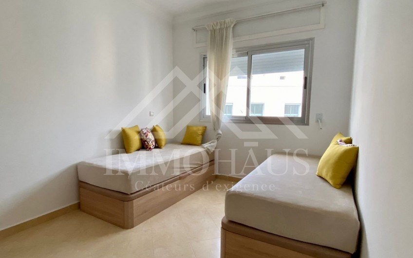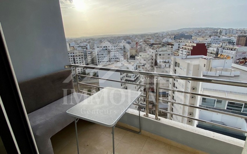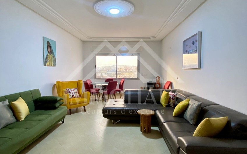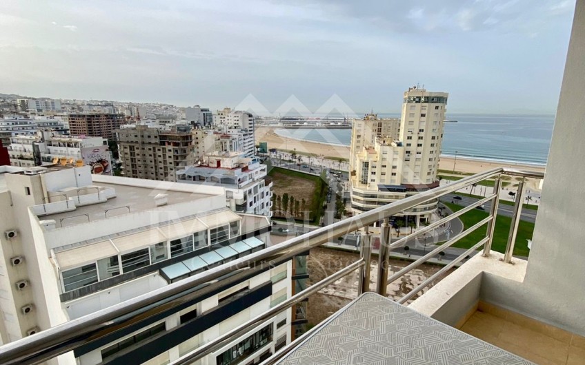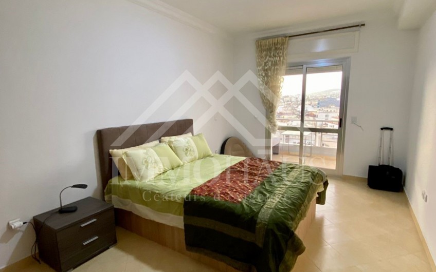 IMMOHAUS Tanger met à votre disposition cet appartement meublé au 15 ème étage , situé dans une résidence sécurisée avec ascenseurs , ensoleillé avec vue mer à côte kasmi .